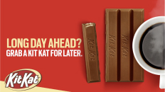 The morning campaign paired a Kit Kat with coffee and encouraged consumers to grab a Kit Kat for the long day ahead.