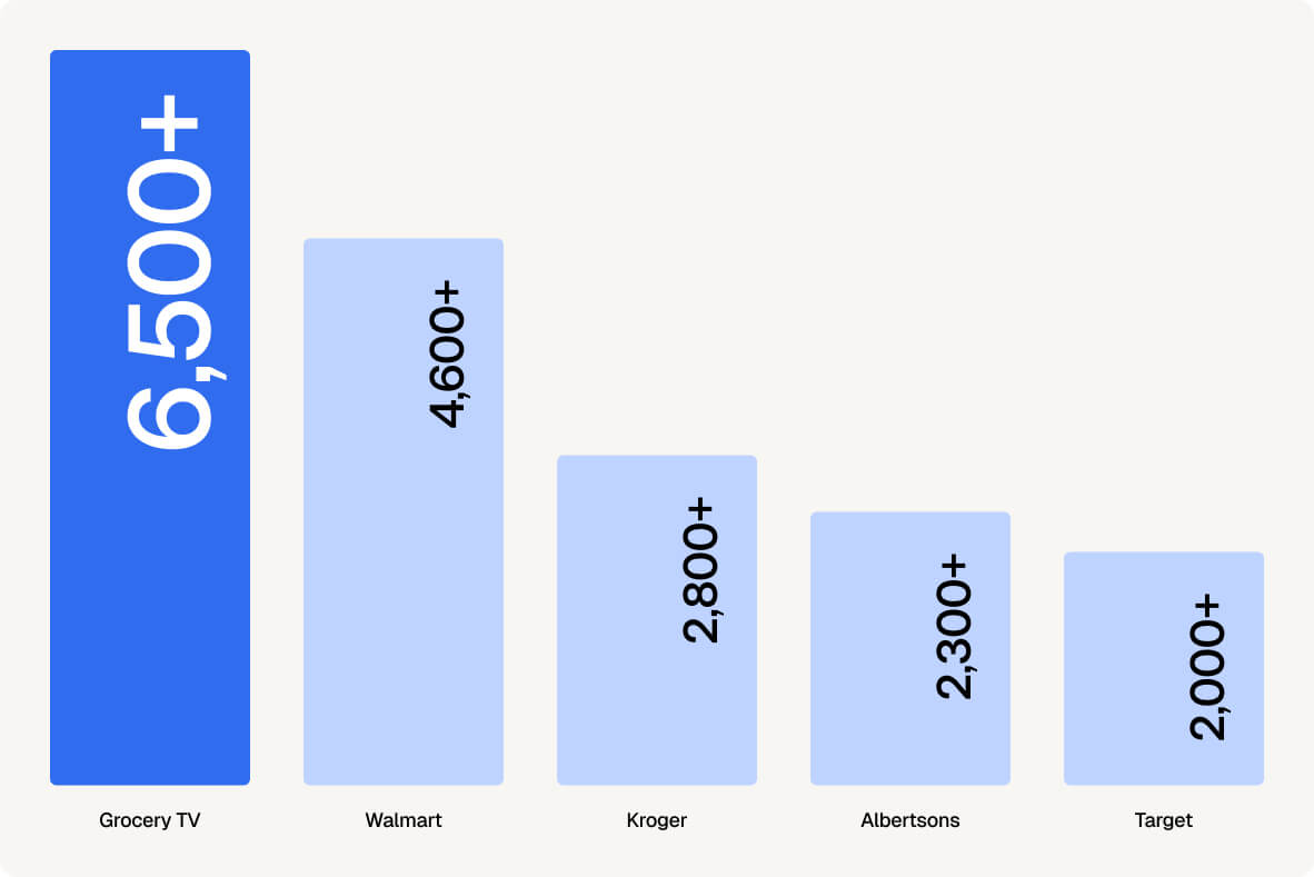 More than 25% of grocers partner with Grocery TV making it the largest in-store retail media network in the US.